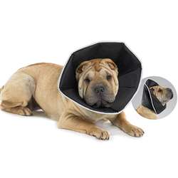 - Krave dyrlægen giver hunden på kan fås i stof og hedder “Comfy Cone” den er langt mere behagelig for hunden at have på, da den ikke giver dem den forvrængede lyd ved at have en spand over hovedet. Jeg har købt den og har rigtig god erfaring med den, søg efter den på nettet, da jeg ikke tror der er nogen butikker der har den i DK.